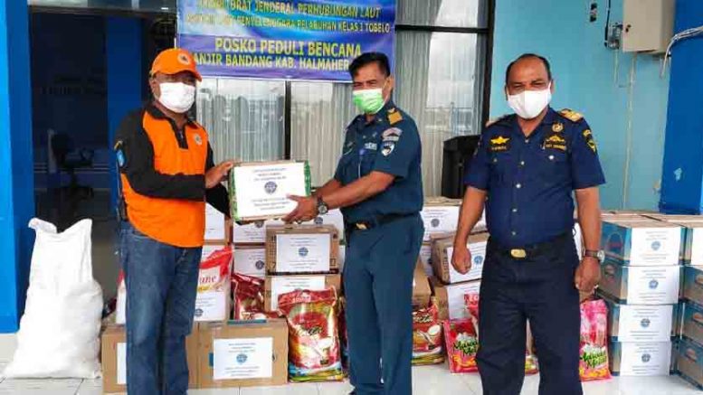 Dijelaskan juga, bahwa dalam konteks penyerahan bantuan atas nama Kementerian Perhubungan unit kerja Maluku Utara yakni KSOP Ternate dan KUPP yang ada di Malut.  “kesekuruhan unit kerja sebanyak 10 instansi melakukan koordinasi dengan menyalurkan bantuan yang ada melalui titik pelabuhan Tobelo yang menjadi wilayah bencana,” jelasnya.