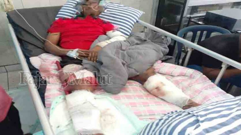 Kecelakaan tersebut korban langsung dilarikan ke Rumah Sakit Chasan Boesoerie Ternate karena korban mengalami luka bakar dibagian tangan kiri dan tulang kaki kanan patah serta luka parah dikedua kakinya.