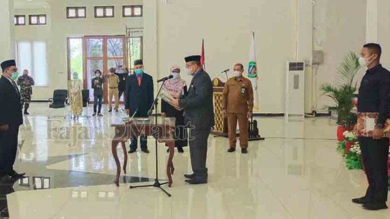 MABA- Pejabat (Pj) Bupati Kabupaten Halmahera Timur (Haltim) M. Ali Fataruba melantik Denny Tjan sebagai Pejabat Sekretaris Daerah (Sekda) Kabupaten Haltim bertempat di aula kantor Bupati Haltim Senin, (15/2/2021).