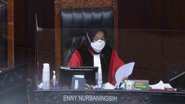 “Dengan demikian, Termohon harus memastikan pemungutan suara di PT Nusa Halmahera Minerals hanya dapat diikuti oleh karyawan PT Nusa Halmahera Minerals yang belum menggunakan hak pilihnya pada tanggal 9 Desember 2020. Untuk kepentingan tersebut, Termohon dapat menyusun DPT khusus sehingga dapat dipastikan karyawan PT Nusa Halmahera Minerals yang telah menggunakan hak pilihnya pada tanggal 9 Desember 2020 tidak lagi menggunakan hak pilihnya di TPS khusus tersebut. Berdasarkan pertimbangan Mahkamah tersebut di atas, dalil Pemohon a quo beralasan menurut hukum,” terang Enny.