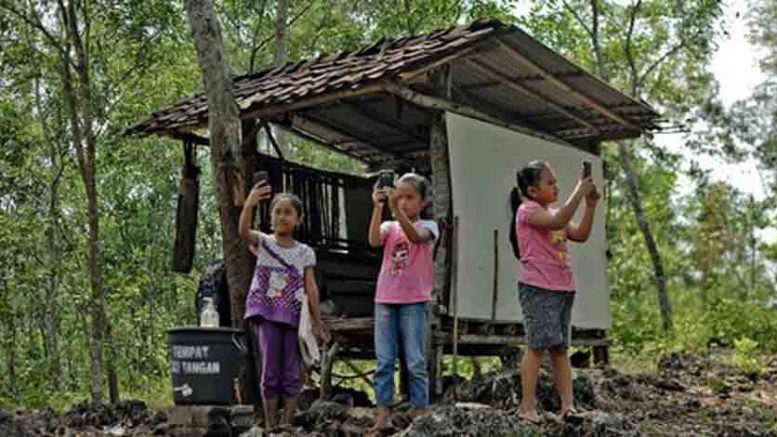 Para guru harus menyiapkan fasilitas seadanya ke tanjung wauo di desa Lalonga, Kabupaten Halmaheraaa Utara (Halut) untuk mencari jaringan internet.