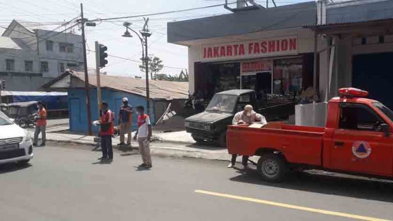 Akibat dampak abu vulkanik membuat Badan Penanggulangan Bencana Daerah (BPBD) harus menerjunkan staf ke lapangan untuk melakukan pembagian masker bagi masyarakat.