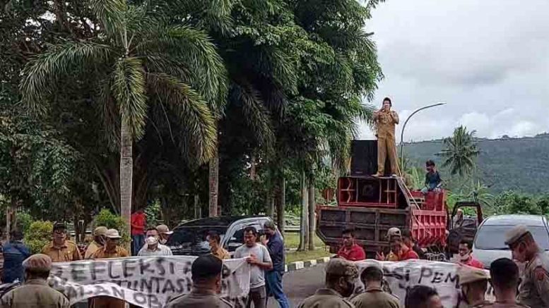 SOFIFI – Sejumlah Kepala Desa (Kades) yang tergabung dalam Asosisasi Pemerintah Desa (Apdesi) di dataran Oba, Tidore Kepuluan, menggelar unjuk rasa di kantor DPRD Provinsi Malut dan kantor Gubernur Malut, Selasa (28/12/21).