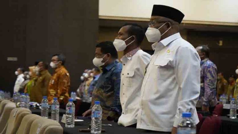 TIDORE – Walikota Tidore Kepulauan, Capt Ali Ibrahim bersama Ketua DPRD Kota Tidore Kepulauan, Ahmad Ishak menghadiri rapat koordinasi Program Pemberantasan Korupsi Terintegrasi dengan Pemerintah Daerah se-Provinsi Maluku Utara di Ballroom Sahid Bella Hotel Kota Ternate, Selasa (29/3/22).