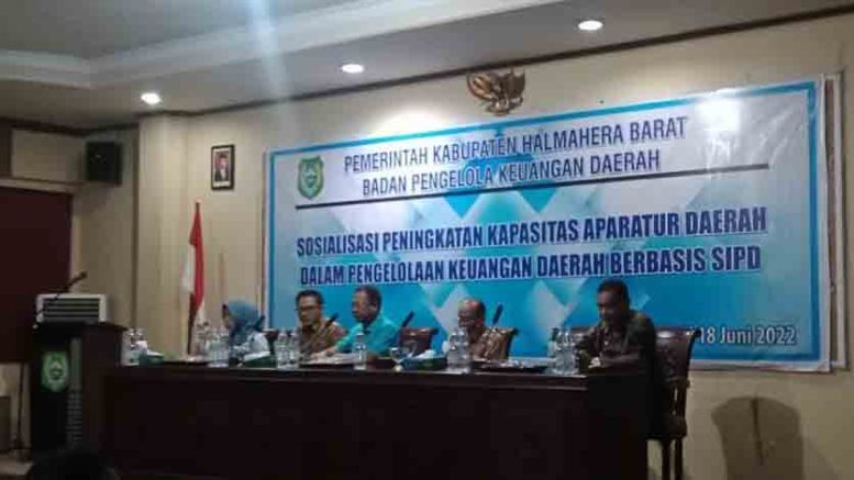 JAILOLO – Pemerintah Kabupaten (Pemkab) Halmahera Barat (Halbar) melalui Badan Pengelolaan Keuangan Daerah melaksanakan kegiatan “Sosialisasi Peningkatan Kapasitas Aparatur Daerah Dalam Pengelolaan Keuangan Daerah Berbasis SIPD,” Kamis (16/06/22).
