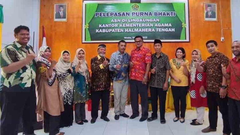 WEDA – Suasana haru menyelimuti kegiatan Pelepasan Purna Bhakti Tiga ASN terbaik di lingkungan Kemenag Halteng. Tiga ASN tersebut yakni, Abdul Kadir Raharusun Staf Seksi PAIS, Ali Abdullah KTU MTs N 1 Halteng dan Kamal Tahane Kepala Madrasah Tsanawiyah Fastabiqul Khairat Banemo.
