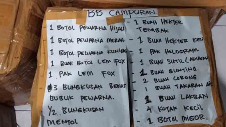 Infromasi yang dihimpun, selain barang bukti minyak tawon, anggota juga mengamankan beberapa barang bukti campuran sebagai bahan racikan pembuatan minyak tawon termasuk satu pak Hologram.