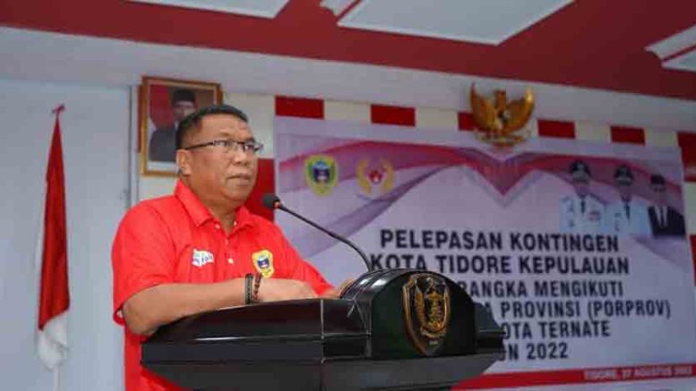 TIDORE – Sebanyak 162 Atlet Kontingen Kota Tidore Kepulauan mengikuti Pekan Olahraga Provinsi (Porprov) IV Maluku Utara Tahun 2022 di Kota Ternate yang dilepas secara resmi oleh Sekretaris Daerah Kota Tidore Kepulauan Ismail Dukomalamo di Aula Sultan Nuku Kantor Walikota Tidore, Sabtu (27/8/2022).
