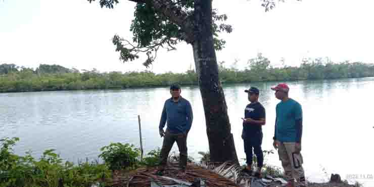 Bupati Aliong Mus didampingi Kadis PUPR Suprayidno meninjau lokasi perencanaan pembangunan jembatan Holbota-Kawalo,