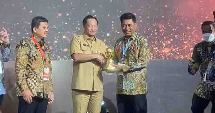 Penghargaan UHC diberikan langsung oleh Menteri Dalam Negeri M. Tito Karnavian Kepada Bupati Halmahera Timur, Ubaid Yakub yang didampingi Kepala Dinas Kesehatan Abdulah Yakub di Balai Sudirman Jakarta Selasa, (14/03/2023).