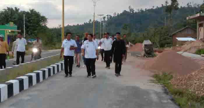 BOBONG – Bupati Aliong Mus rela berjalan kaki saat pulang kantor hanya untuk memantau pelaksanaan pembangunan yang dicanangkan dalam Kota Bobong awal tahun 2023 ini.