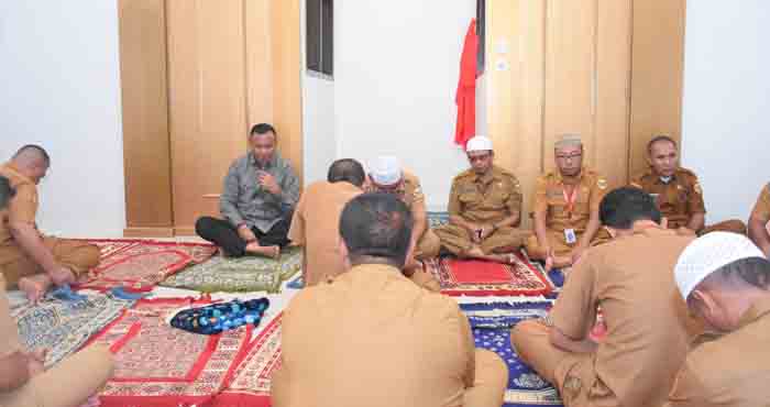 TIDORE – Hari pertama kerja dalam Bulan Suci Ramadhan, Aparatur Sipil Negara (ASN) maupun non ASN di lingkup Kantor Walikota Tidore melaksanakan sholat dzuhur berjamaah sekaligus mengikuti Tausiyah di Mushola Kantor Walikota Tidore, Senin (27/3/2023).
