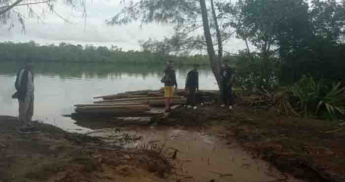 Pada saat anggota melaksanakan pengecekan di TKP, ditemukan puluhan kubik kayu balok jenis meranti merah.
