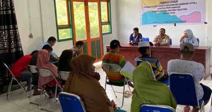 LABUHA – Kantor Pertanahan (Kantah) Kabupaten Halmahera Selatan (Halsel) melakukan Penyuluhan Pendaftaran Tanah Sistematis Lengkap (PTSL) Tahun 2023 di 2 Kecamatan Pulau Kasiruta.