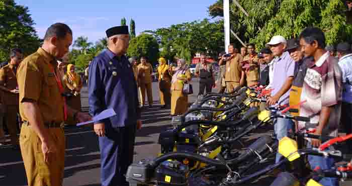 Bantuan yang bersumber dari kegiatan pengadaan sarana pra panen DAK Bidang Pertanian Tahun 2023 ini diserahkan langsung oleh Walikota Tidore Kepulauan Capt, H. Ali Ibrahim pada Apel Gabungan ASN Kota Tidore, di Halaman Kantor Walikota, Senin (31/7/2023).