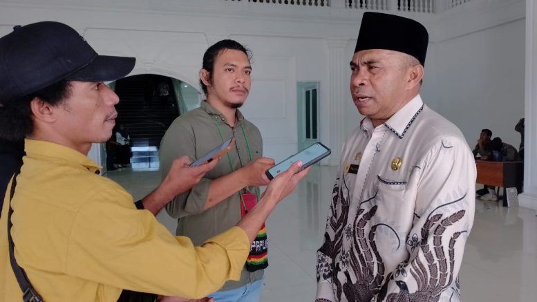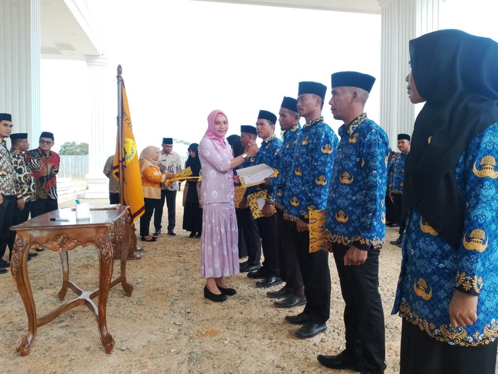 Penyerahan SK Pengangkatan PPPK Guru jenjang SD dan SMP oleh Bupati yang diwakilkan oleh Sekda Salim Ganiru diikuti pimpinan OPD setempat di halaman puncak Kantor Bupati Taliabu, Senin (02/10/2023).
