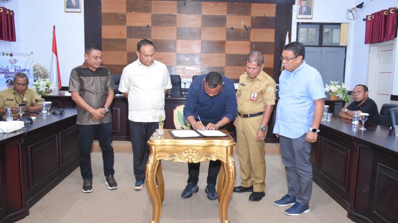 Penyerahan aset hibah tanah dengan luas 6,940 Meter ini ditandai dengan penandatanganan naskah perjanjian hibah Oleh Wakil Walikota Tidore Kepulauan Muhammad Sinen bersama Sekretaris Daerah Kota Tidore Kepulauan Yanto M Asri yang disaksikan secara langsung oleh unsur Pimpinan DPRD Kabupaten Halmahera Tengah, Sekretaris Daerah Kota Tidore Kepulauan, Para Asisten Sekda Kota Tidore dan Halteng serta pimpinan OPD Kota Tidore dan Halteng, di ruang rapat Walikota, Senin (27/11/23).