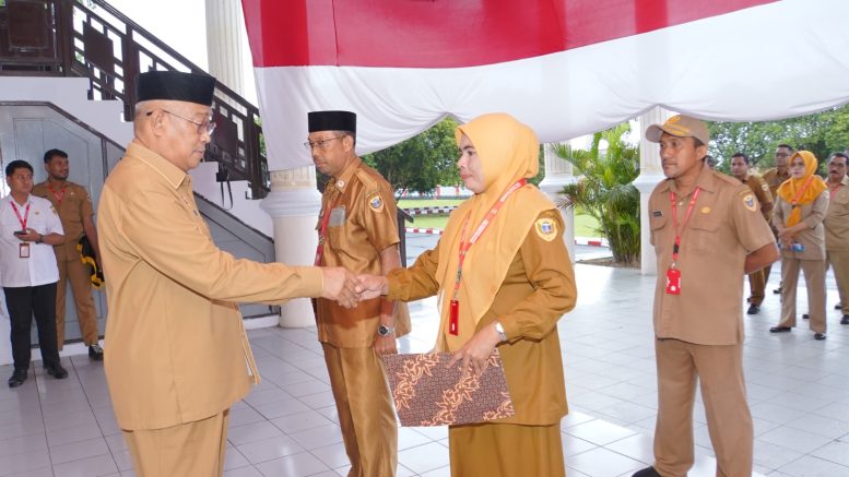 TIDORE – Walikota Tidore Kepulauan Capt. H. Ali Ibrahim menyerahkan secara simbolis Surat Keputusan (SK) kenaikan pangkat periode Februari Tahun 2024 seusai apel gabungan di Pelataran Halaman Kantor Walikota Tidore, Senin (22/1/2024).