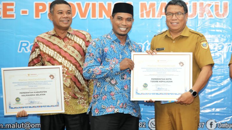 Penghargaan tersebut berdasarkan Surat Keputusan Ketua Ombudsman RI Nomor 418 Tahun 2023 Tentang Hasil Penilaian Kepatuhan Penyelenggara Pelayanan Publik Tahun 2023 yang diterima Sekretaris Daerah Kota Tidore Kepulauan, Ismail Dokumalamo, pada Kegiatan Penyampaian Hasil Penilaian Kepatuhan Penyelenggara Pelayanan Publik Tahun 2023 bagi Pemerintah Daerah se Maluku Utara yang dipusatkan Function Hall Royal Restaurant Ternate, Senin (29/1/2024).