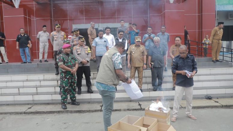 TERNATE – Pada Selasa (13/2/2024) sejumlah surat suara yang rusak dimusnahkan Komisi Pemilihan Umum Kota Ternate, pemusnahan dilakukan di Sport Hall Marimoi Ternate kelurahan Ubo-Ubo yang disaksikan oleh Forkopimda Kota Ternate dan Bawaslu Kota Ternate.