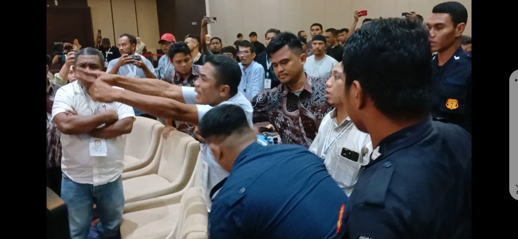 TERNATE – Rapat pleno rekapitulasi yang dilakukan Komisi Pemilihan Umum (KPU) Provinsi Maluku Utara pada Minggu (10/3/2024) ricuh, ini bermula ketika ada perbedaan data antara KPU Halmahera Selatan dengan data yang dimiliki oleh saksi partai Golkar di Kecamatan Obi.