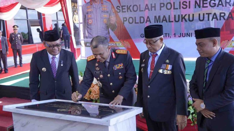 TIDORE – Kapolda Maluku Utara Irjen Pol Midi Siswoko melakukan peresmian Sekolah Polisi Negara (SPN) Polda Maluku Utara di Kelurahan Gurabati, Kota Tidore Kepulauan, Sabtu (1/6/2024), Peresmian ini ditandai dengan penandatanganan prasasti dan Pengguntingan Pita oleh Kapolda Maluku Utara didampingi Pj. Gubernur Malut dan Walikota Tidore Kepulauan.