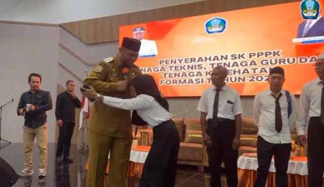 LABUHA – Penyerahan SK pengangkatan Pegawai Pemerintah dengan Perjanjian Kerja (PPPK) di lingkup Pemerintah Kabupaten Halmahera Selatan, Senin (10/6/2024) setidaknya merupakan momentum istimewa bagi mereka yang sudah lama mengabdi sebagai honorer.