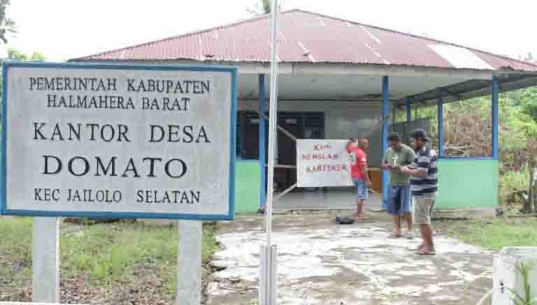 Warga Desa Domato, Kecamatan Jailolo Selatan, Kabupaten Halmahera Barat memalang kantor desa.