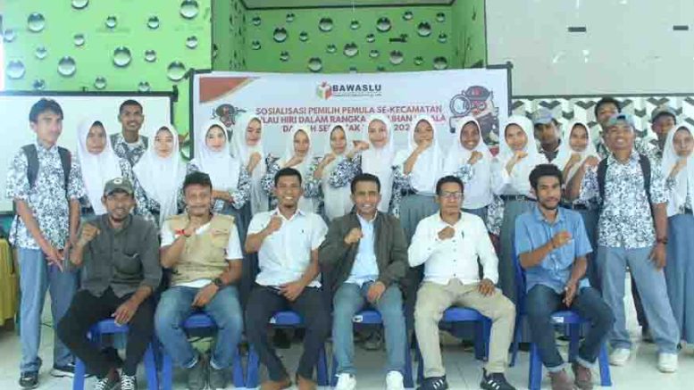 TERNATE – Panitia Pengawas Pemilihan Kecamatan (Panwascam) Pulau Hiri melaksanakan Sosialisasi Pemilu Pemilih Pemula se-Kecamatan Pulau Hiri, Rabu, (24/7/2024) di Sonyie Mado, Kelurahan Mado, Pulau Hiri.