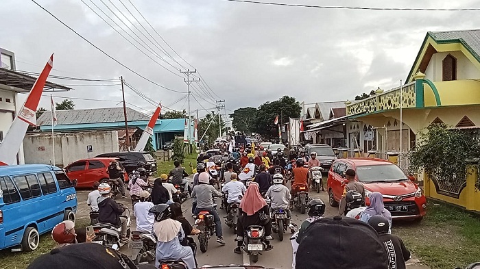 Meski sempat diguyur hujan deras tak menyurut semangat simpatisan serta loyalitas pendukung fanatik Bahrain Kasuba dan Umar Hi Soleman. Cakada yang diusung Partai Gerindra dan Partai Golkar itu tiba di pelabuhan Babang sekira pukul 04.00 WIT, selanjutnya kedua pasangan Cakada ini arak menggunakan ratusan kendaraan roda empat maupun roda dua menuju Desa Tomori Kecamatan Bacan.