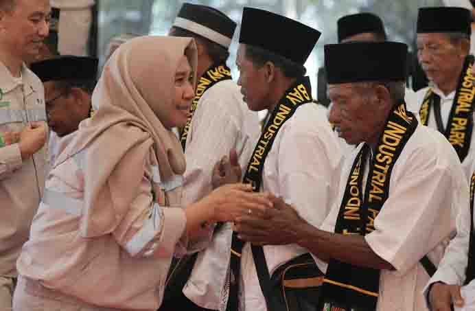 General Manager HRD PT IWIP, Roslina Sangaji, memberikan ucapan kepada jamaah umroh