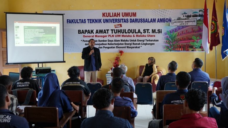 Adapun kuliah umum ini, Awat memberikan gambaran umum tentang wilayah kerja PLN UIW MMU, kondisi kelistrikan di Pulau Ambon, hingga pembangunan infrastruktur kelistrikan dengan memanfaatkan energi baru terbarukan.