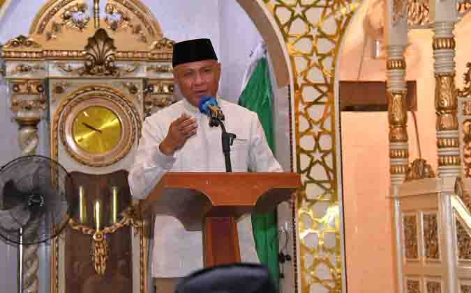 TIDORE – Wakil Walikota Kota Tidore Kepulauan Muhammad Sinen menghadiri sekaligus memberikan sambutan pada Peringatan Maulid Nabi Muhammad SAW 1446 H 2024 M, yang diselenggarakan Pemerintah Kelurahan Tomalou Kecamatan Tidore Selatan Kota Tidore Kepulauan bekerja sama dengan Yayasan Nurul Bahar dengan tema “Keteladanan Rasulullah SAW Dalam Berbagai Aspek Kehidupan”, bertempat di Masjid Agung Nurul Bahar Kota Tidore Kepulauan Kelurahan Tomalou Minggu (15/9/24) malam.