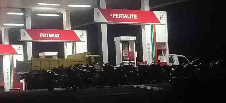 Amatan Fajar Malut di lapangan pukul 03.00 WIT dini hari itu, terlihat kurang lebih 20 unit motor yang terdiri dari berbagai merek dan dua mobil pick up serta satu dam truk melakukan antrian Bahan Bakar Minyak (BBM).