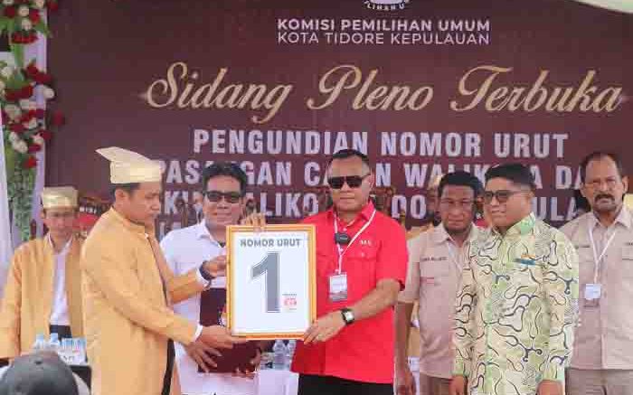 Hal ini sesuai dengan Keputusan KPU Kota Tidore Kepulauan, Nomor 627 Tahun 2024, Tentang Penetapan Nomor Urut Pasangan Calon Walikota dan Wakil Walikota Tidore Kepulauan Dalam Pemilihan Tahun 2024.