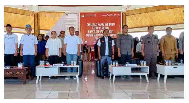 Deklarasi tersebut juga diikuti Bawaslu Halmahera Barat, Kejari dan TNI-Polri serta 4 Pasangan Calon (Paslon) Bupati dan Wakil Bupati.