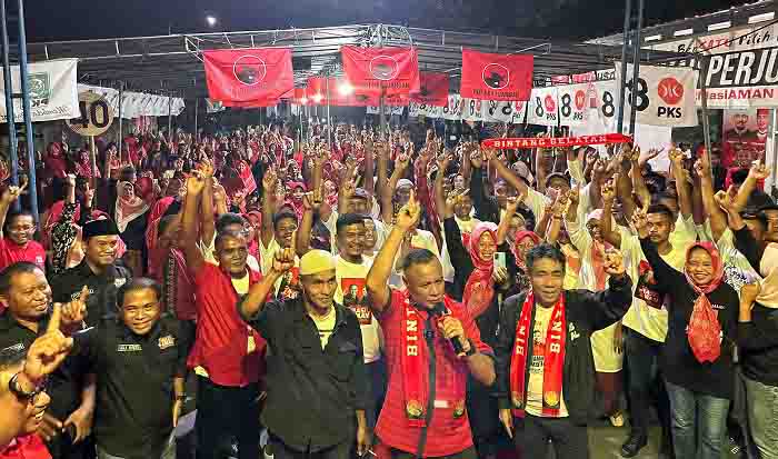 Dukungan dan antusias ratusan Masyarakat Tongowai kepada pasangan nomor 1, yang dijargonkan dengan MASI AMAN itu, nampak terlihat pada saat kampanye terbatas MASI AMAN di Kelurahan Tongowai, Minggu, (3/10/24).