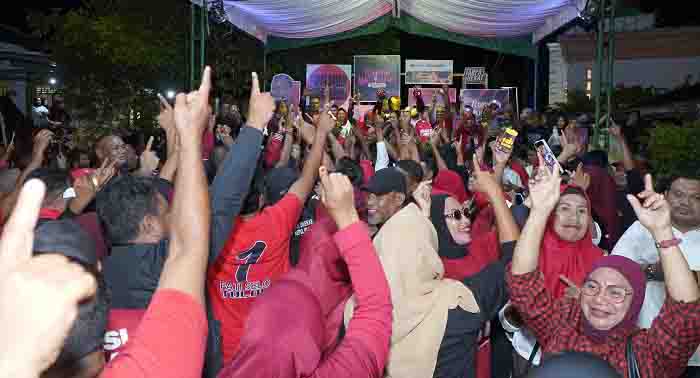 TIDORE – Kampanye pasangan Calon Walikota dan Wakil Walikota nomor urut 1, Muhammad Sinen dan Ahmad Laiman (MASI AMAN), di Kelurahan Toloa, Kecamatan Tidore Selatan, dipenuhi lautan manusia.