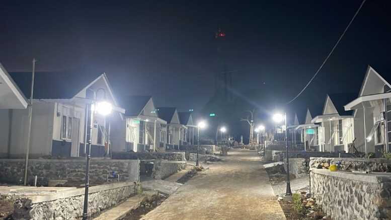 Kini listrik, jalan dan air bersih juga sudah disiapkan, dan pada Jumat (3/1/2025) telah dilakukab uji coba penyalaan lampu jalan dilokasi huntap.