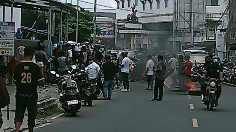 Aksi yang dilakukan sejak pagi hari itu, sempat memacetkan arus lalu lintas di depan kantor lurah, dengan aksi bakar ban.