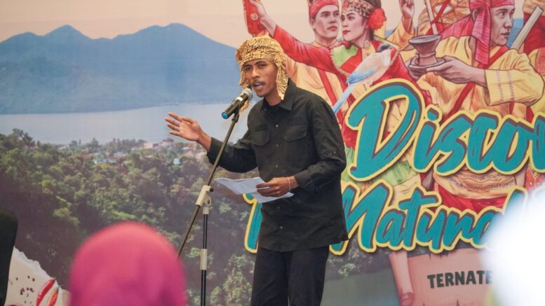 TIDORE – Penampilan Amal Hasanudin atau yang dikenal D’Facto, dalam membacakan puisi dengan menyatukan musik tradisional dan sentuhan modern sukses mencuri perhatian para Tamu dan Investor yang menghadiri Opening Ceremony eksibisi “Discovery The Natural Treasure Tidore & Ternate” di Ruang Flores A, Hotel Borobudur Jakarta. Kamis, (22/4/26).