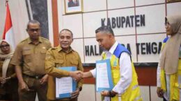 HALTENG – Sekertaris Daerah Bahri Sudirman menghadiri penandatanganan perjanjian jual beli tenaga listrik sebesar 11 Megawatt (MW) antara PT. Weda…